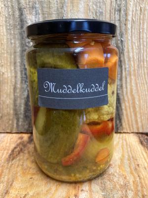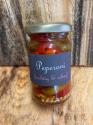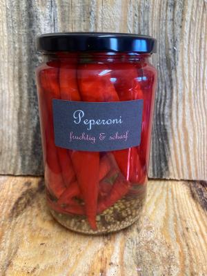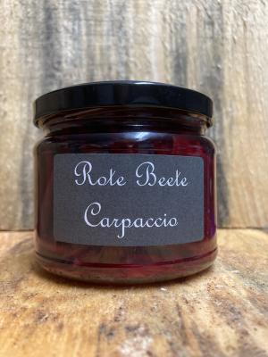 Rote Bete Scheiben, geschichtet auf Äpfeln und Zwiebeln. Süß-sauer eingelegt und fein-würzig abgschmeckt.